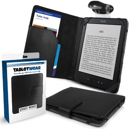 Etui / Housse - NOIR pour Amazon Kindle 4 ('SD Folio' Tablet Case / Cover / Pouch) avec Lampe de lecture (Clip-On LED Reading Lamp) à partir de G-HUB pour 6" (inch / pouce) Model (4ème Génération / 2011 / WiFi)