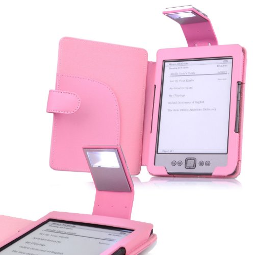ForeFront Cases® Housse Étui en cuir synthétique avec lampe de lecture LED, rose - pour Amazon Kindle 4 Wi-Fi, 6", affichage encre électronique E Ink, Noir - 5th Gén SEPT 2012 Case Cover